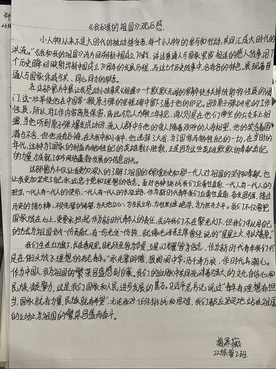 观影的尾声响起,同志们纷纷表示深受触动。大家被电影中那些平凡而伟大的个体所感动,他们用自己的实际行动诠释着爱国主义的真谛。同时,大家也深刻认识到,祖国的繁荣昌盛离不开每一个人的努力和付出,作为新时代的青年学子,更应该珍惜当下,努力学习,为祖国的未来发展贡献自己的力量。