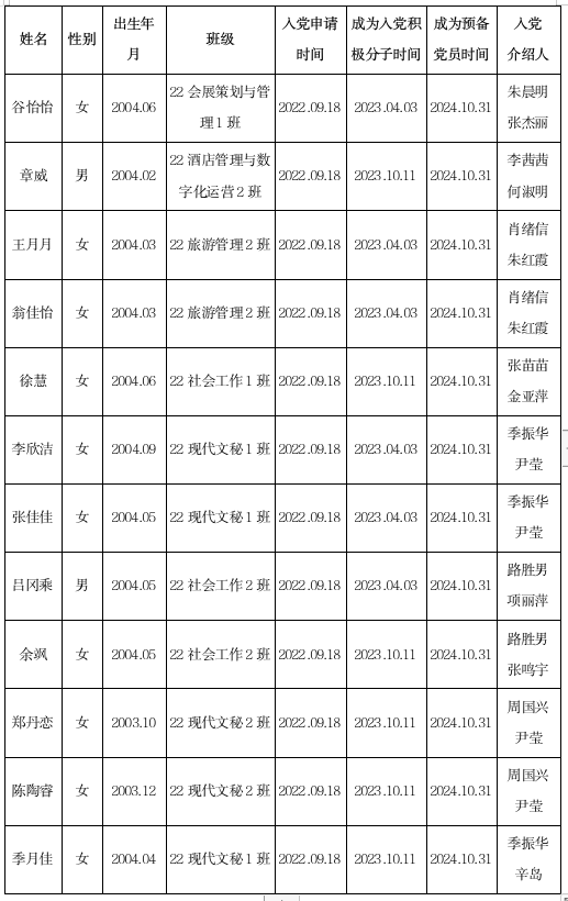 经支委会研究,定于 2024 年 10月 31 日召开党员支部大会,对谷怡怡等12名发展对象吸收为中共预备党员进行讨论,望广大师生予以监督。如不符合条件,请在公示之日起七天内向本支部或上级党委反映,并提供必要的证据。举报电话: 83803652 。