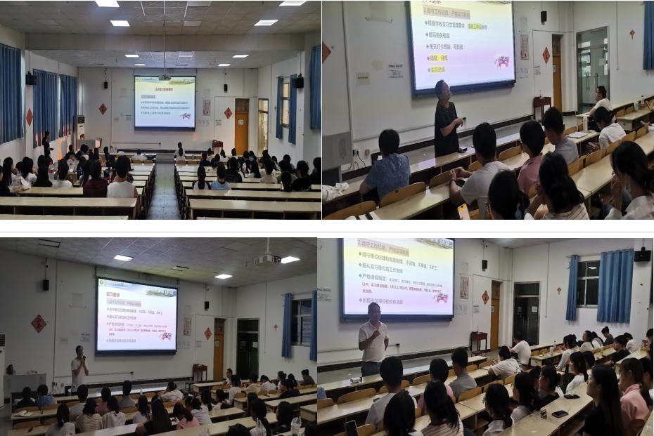 高保英主任详细地分析了实习过程中可能存在的风险与挑战,希望同学们更加深刻地理解“纸上得来终觉浅,绝知此事要躬行”,在实习过程中不断磨练自己。余佩老师做动员报告,她强调了实习的重要性,明确了实习具体安排,并要求同学们端正实习心态、遵纪守规、勤于实践、注意安全。李凌云老师对工学云平台注册使用作说明;彭颐老师对实习鉴定表规范填写作说明;唐明老师强调实习纪律;beat365亚洲体育官方网站教学办主任胡建刚对实习安全和重要性进行总结,希望全体同学在实习岗位中锤炼高尚品德,服务人民,奉献社会,充分展现beat365亚洲体育官方网站学子的风采。
