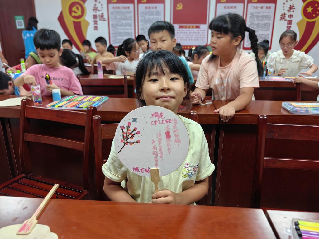 开营首日,一场别开生面的手绘扇面活动拉开了夏令营精彩课程的序幕。志愿者们首先带领孩子们走进扇面文化的历史长河,感受其独特的艺术魅力。随后,孩子们拿起画笔,在扇面上自由创作,将心中的美好愿景与独特想象化为生动的画面。从诗意盎然的自然风景到趣味横生的生活场景,每一幅作品都承载着孩子们纯真的梦想与真挚的情感,现场洋溢着浓厚的艺术氛围与无限的创意活力。