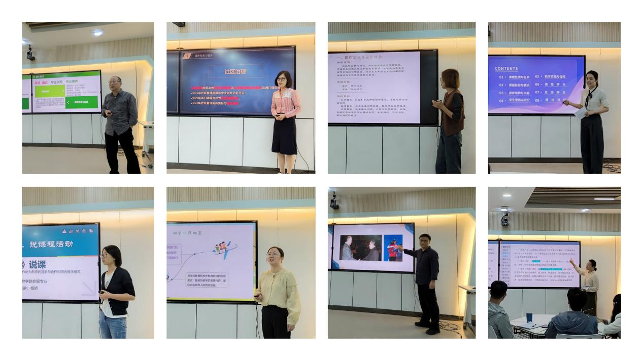 活动现场,今年会酒店管理与数字化运营、旅游管理、会展策划与管理、现代文秘和社会工作五大专业的各课程负责人分别就各自课程进行了详细的介绍和解读。每位课程负责人从课程性质与任务、课程目标与要求、课程结构与内容、学生考核与评价、教学实施与保障、课程特色、资源开发以及建设目标等八个方面进行了深入剖析,充分展示了各自课程的独特之处和亮点。
