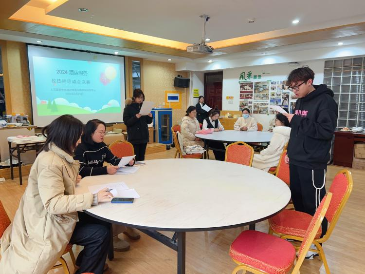2月29日,今年会官网酒店管理与数字化运营专业在实训楼302顺利召开校技能运动会酒店服务赛项最终决赛。