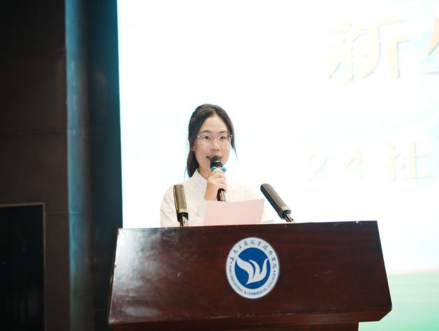 开学典礼上,学院领导班子和科室负责人逐个上台并向新生致以热烈的欢迎和诚挚的祝福。全体新生班主任为班级新生代表佩戴了学院精心设计的院徽。在新生代表发言环节,来自社会工作和会展策划与管理专业的张师琪、王云同学号召全体新生尽快适应新环境,尊师善学,树立目标,全身心投入到新的学习、生活、实践中去。