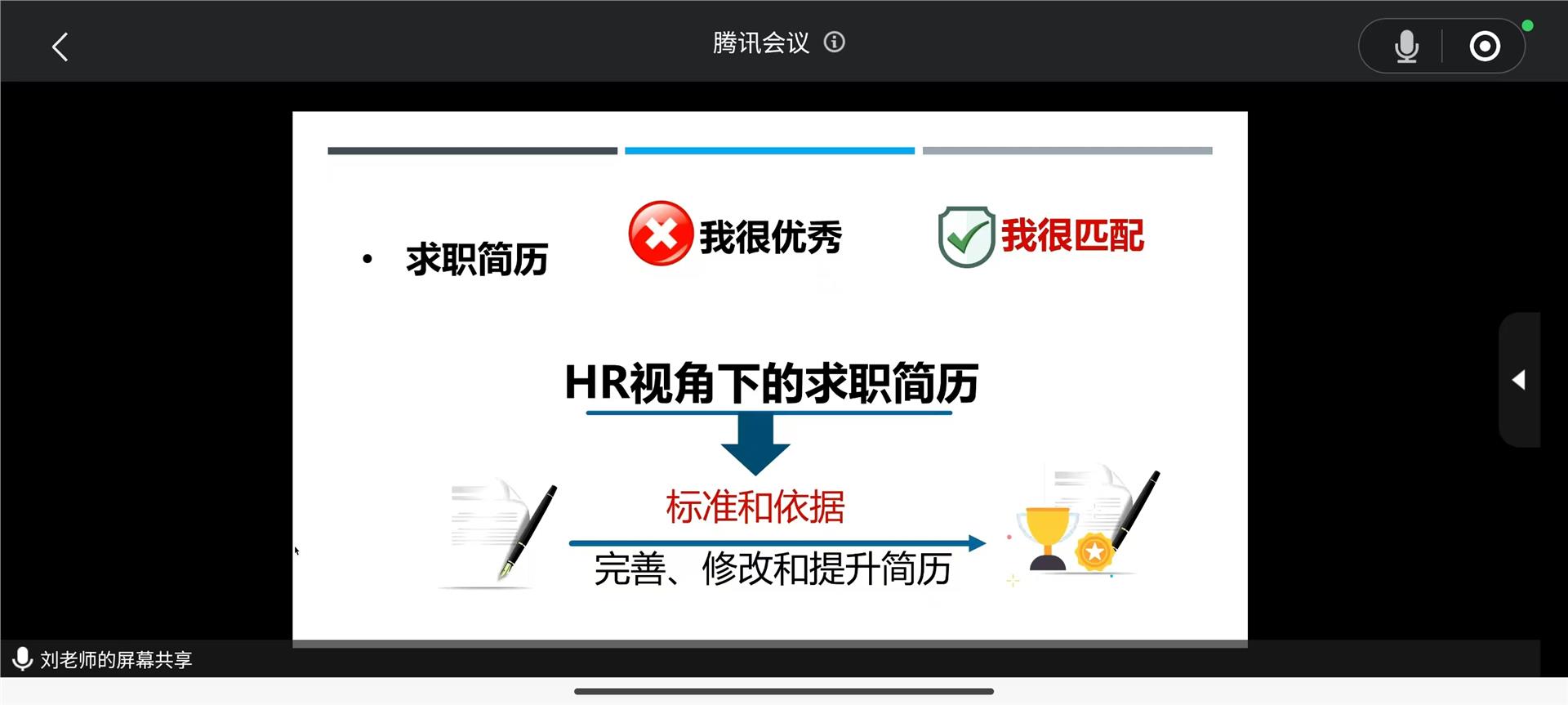 为切实做好学院2025届毕业生就业指导和服务工作,进一步提升毕业生就业技能,增强简历制作能力,全面提高学生就业竞争力,11月19日晚上7点,今年会官网在腾讯会议线上举办了就业主题讲座,全体2025届毕业生通过线上方式观看。