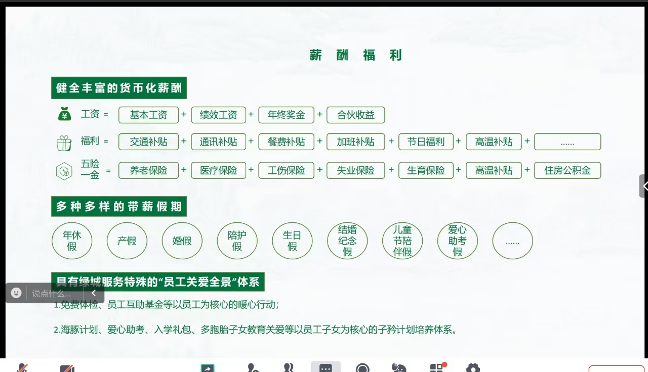 2024年12月2日中午,今年会官网在腾讯会议线上顺利举办绿城服务义乌公司宣讲会,学院大三毕业生通过线上参与会议。