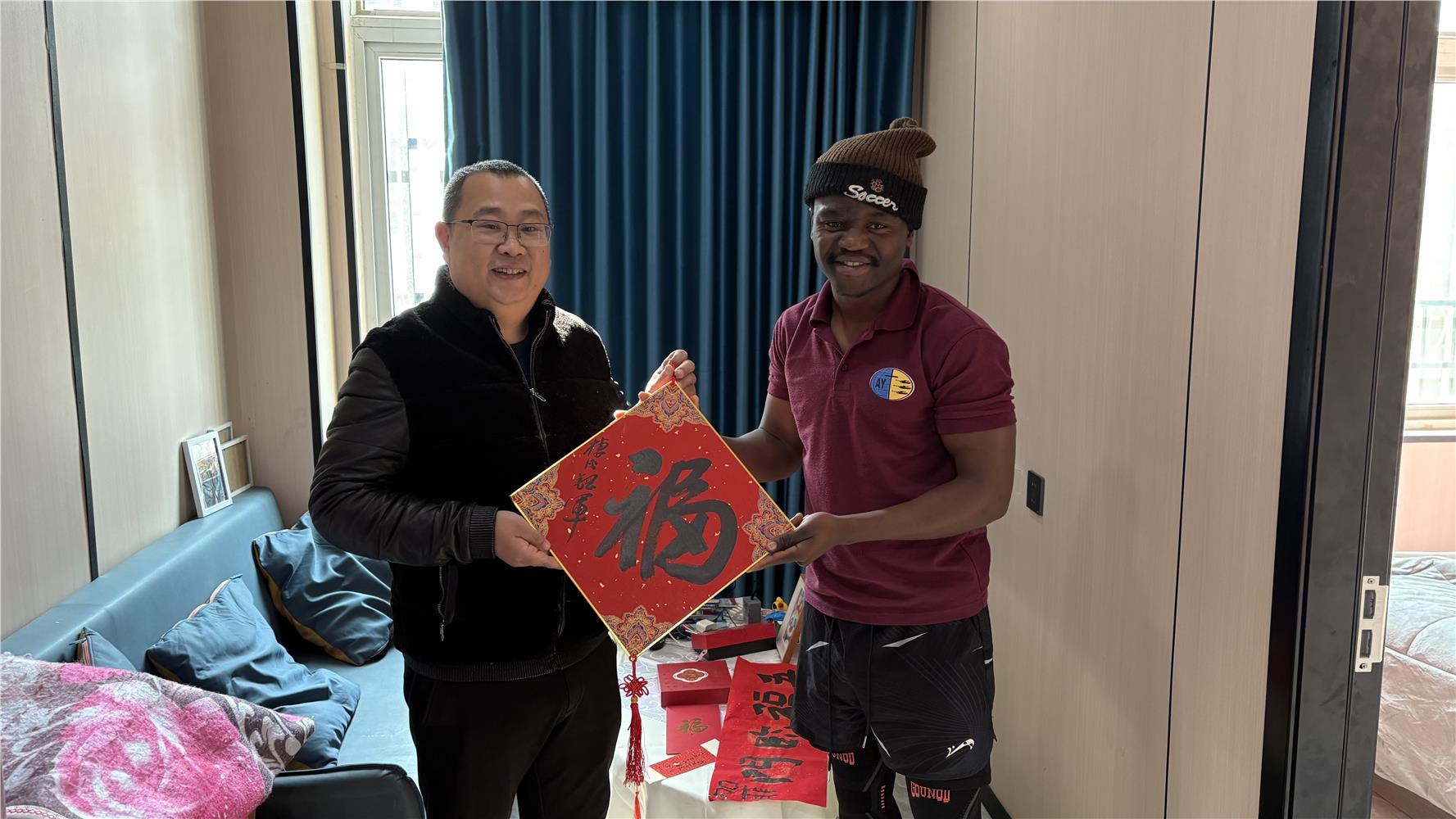 为了让留守义乌的国际学子们感受到家的温暖,今年会官网党委负责人亲自走访慰问。在走访过程中,学院党委负责人与国际学生们亲切交流,详细了解他们的学习、生活情况以及春节期间的安排,认真倾听他们的心声和需求。同时,为他们送上了精心准备的新春祝福,鼓励他们在新的一年里继续努力学习,积极融入中国文化,不断提升自我。国际学生们纷纷表示,感受到了学院的关怀与温暖,这个春节不再孤单,他们将更加珍惜在义乌的学习时光,努力成为中外文化交流的友好使者。