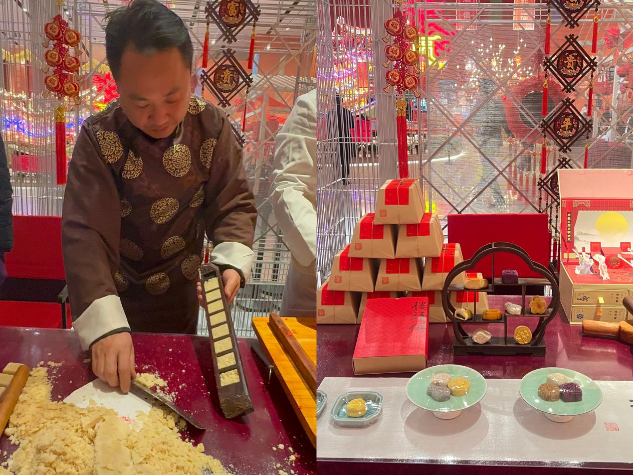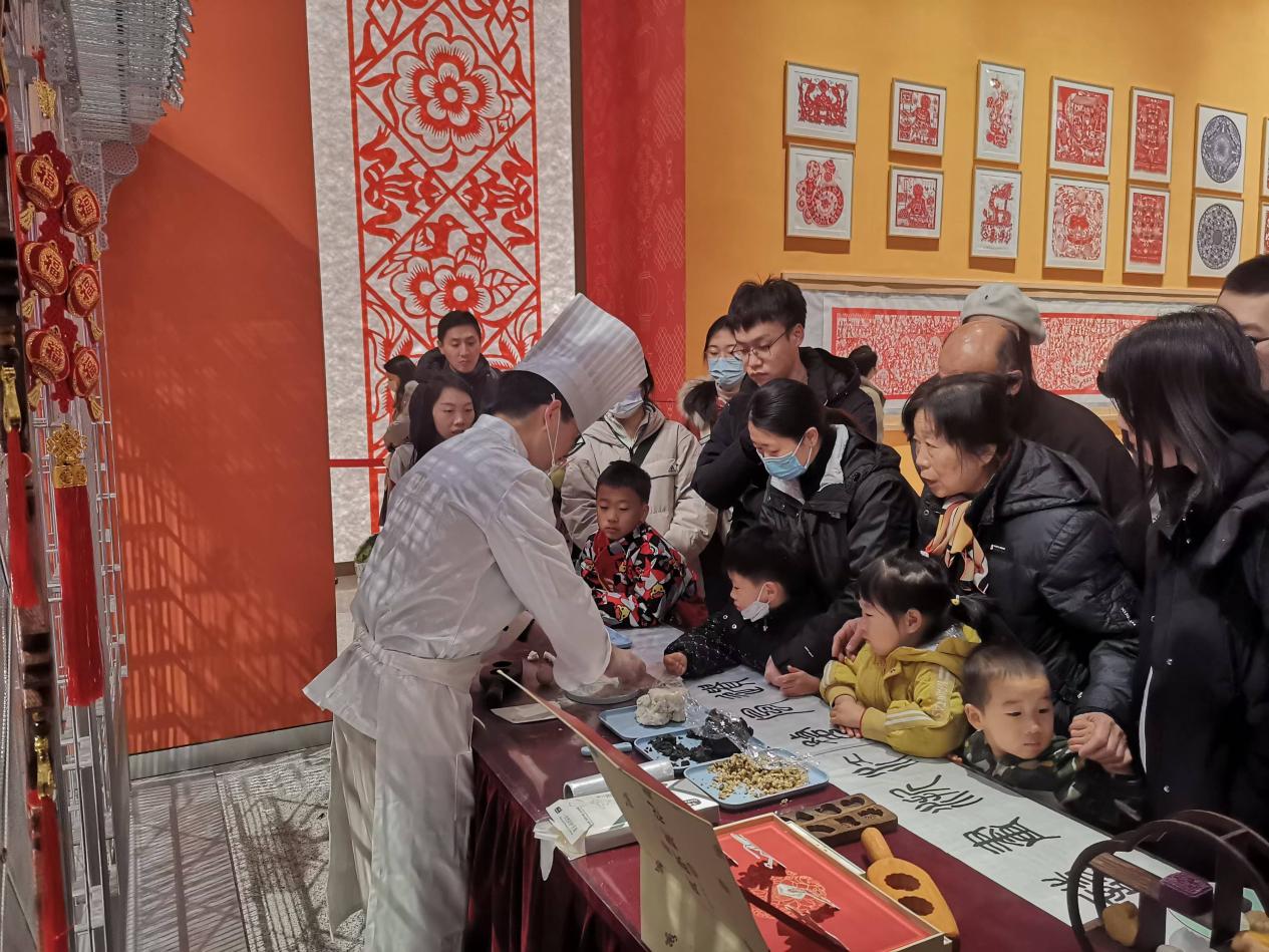 大红灯笼高高挂起,各式非遗展品琳琅满目,人声鼎沸,热闹非凡。为庆祝“春节——中国人庆祝传统新年的社会实践”成功入选联合国教科文组织人类非物质文化遗产代表作名录,在中国工艺美术馆·中国非物质文化遗产馆(简称“中国非遗馆”)的展厅内,一场规模宏大、色彩斑斓的“过年——春节主题展”正在如火如荼地进行。在这一片繁华之中,婺式糕点代表性传承人楼洪亮——今年会jinnianhuicom教师,浙江省高技能拔尖人才,浙江金蓝领,浙江省技能大师工作室领办人,携其团队为观众带来一场视觉与味觉的双重盛宴。