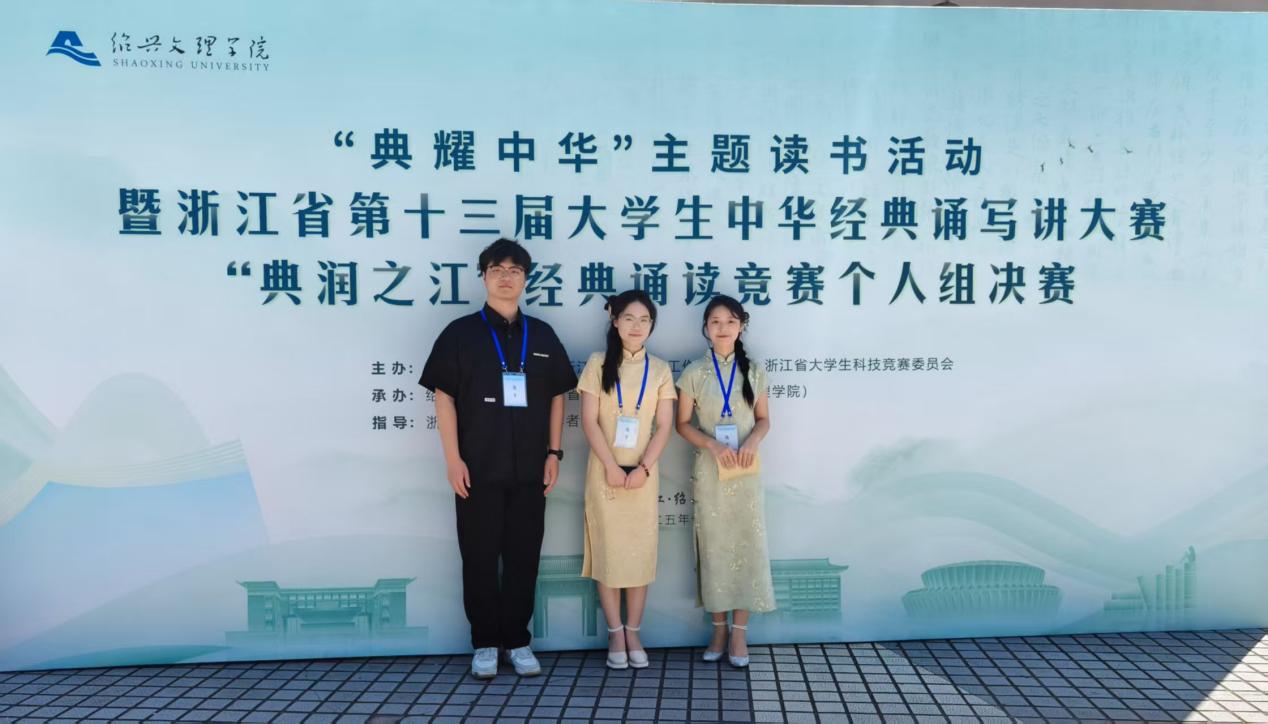 除了个人奖项的辉煌战绩,今年会团队在团体项目中也有出色表现。王馨怡所在的团队默契配合、协同共进,以精彩的集体展示诠释了中华经典的博大精深,最终荣获“典润之江”团体组二等奖。此次大赛不仅是一场技艺的较量,更是一次对中华经典文化的传承与弘扬。通过参与比赛,同学们深入领略了经典的魅力,提升了自身的文化素养和审美能力。同时,也为各高校之间搭建了一个交流与学习的平台,促进了中华经典文化在校园中的传播与普及。