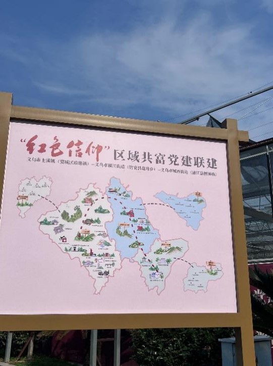 2021年,浙江省义乌市入选浙江高质量发展建设共同富裕示范区首批试点名单。作为“全省新时代美丽乡村示范市”,义乌市大力推进精品线带富工程,规划了10条美丽乡村精品线,“望道信仰线”便是其中之一。该线处于义乌市城西街道,主要围绕陈望道故乡分水塘村进行总体布局,将沿线的横塘公园、七一生态园、“义新欧”中欧班列始发站、上山文化考古遗址、石明堂花厅、长堰水库、何斯路村、陈望道故居等旅游景点串联,打造以红色旅游、爱国主义教育、休闲体验为特色的旅游线路。