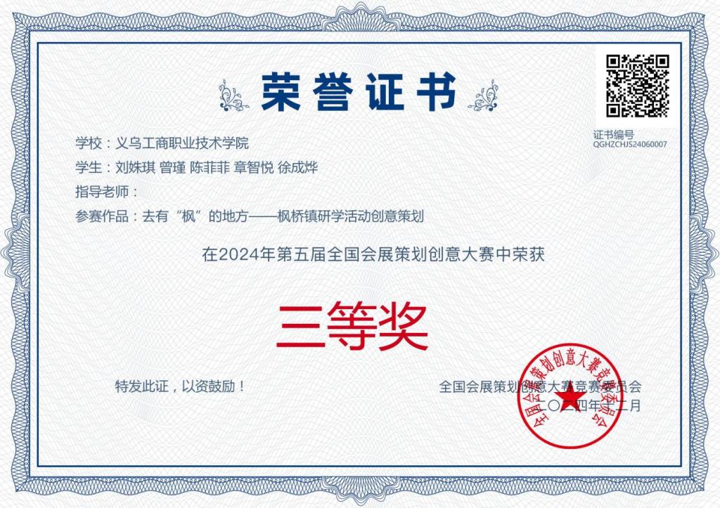 会展策划与管理专业依托义乌国家级会展平台,积极参与各类会展项目的策划与服务工作,通过全真项目培养学生的策划能力、执行能力、沟通能力、团队协作能力、组织能力和创新能力等,旨在为社会培养符合市场需求的高技能型会展人才。专业学生在2024年全国会展策划创意大赛中获得三等奖1项,浙江省会展策划创意大赛中获得二等奖1项,浙江省花艺技能比赛中获得二等奖、三等奖各1项,在2025年浙江省花艺技能比赛中获得一等奖1项。