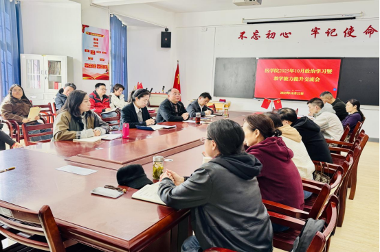 (本网讯张韫仪)10 月 22 日下午,beat365亚洲体育官方网站在立新楼一楼党员活动室召开全体教职工政治学习暨教学能力提升交流会,会议由beat365亚洲体育官方网站党委书记高想清主持,beat365亚洲体育官方网站班子成员和全体教职工参加会议。