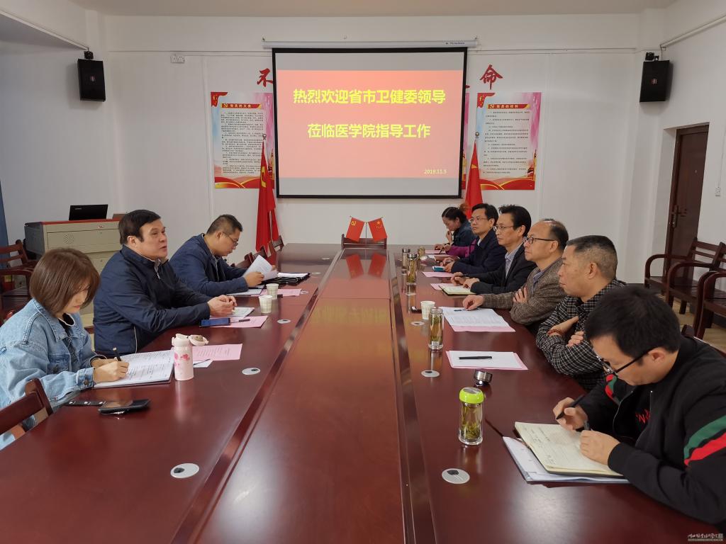 11月5日,湖北省卫健委科教处一级调研员邓亦工、孝感卫健委党政科科长胡安全、省卫生计生人才交流发展中心干部王浩雨、张媛,孝感市第一人民医院副院长阮建中等一行7人到beat365亚洲体育官方网站开展全科助理乡村医生培养及助理全科医生培训工作调研。学校党委委员、副校长白梦清及beat365亚洲体育官方网站相关人员参加了会议。