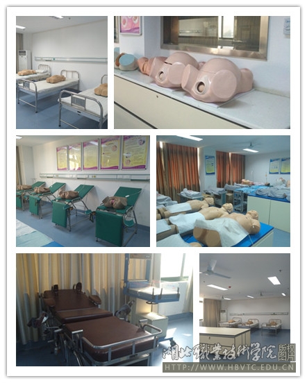 妇产科技能实训室主要包括:妇产科基本技能实训室、模拟产房,主要仪器设备有妇科检查模拟人、产科模拟人、高级四步触诊模型、会阴切开缝合模型、分娩机制模型、产床、非接触式洗手设备和常用手术器械等,能够满足妇产科基本技能操作和平产接生实训教学需要。