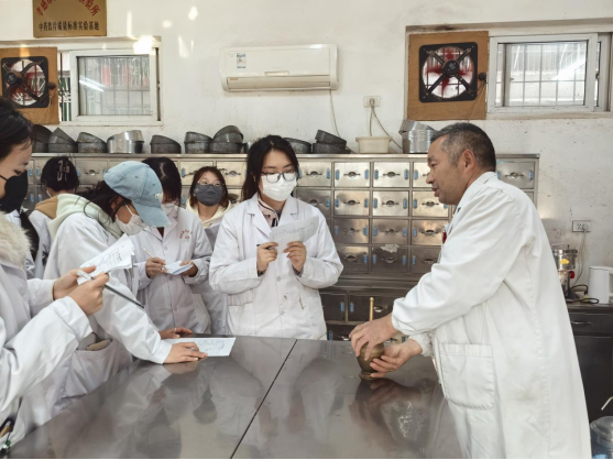 在黎民大药房,老师与企业人事部长及培训药师协同指导,学生们重点观察药品陈列规范,了解处方药与非处方药分柜管理细节,学习药品零售环节的服务流程,直观感受GSP规范在实际经营中的落地应用;走进孝感市中医医院药学部,各岗位学习更显深入:中药房内,药师手把手带教中药材识别、处方调配技巧,详解煎药操作规范与药材配伍禁忌;西药房中,学生们全程观摩西药处方审核、发药指导全流程,切实体会窗口服务的专业标准与责任。