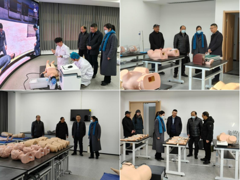胡忠文一行实地考察了学校南区产教融合大楼临床技能考核培训基地、东区药品购销室、中药标本室及药植园等。在临床技能考核培训基地,依次参观了情景化急救中心、妇产科、儿科、诊断、外科、穿刺模拟、数智临床思维等现代化专业实训室,以及配备完善的OSCE考站。在情景化急救中心,考察组现场观摩了心肺复苏模拟操作训练,详细了解了beat365亚洲体育官方网站在提高学生实践操作能力、培养临床思维及科技创新能力方面的具体举措与成效。