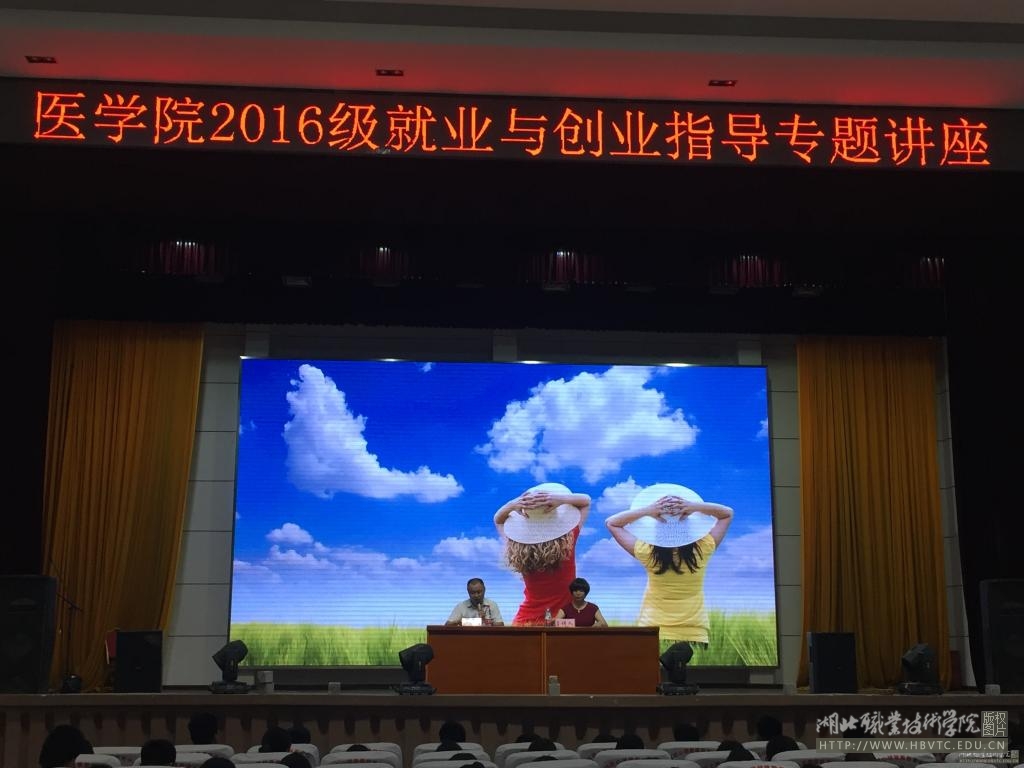6月6日,beat365亚洲体育官方网站在大学生活动中心举办2016级就业与创业指导专题讲座,就业创业指导中心主任程瑛、beat365亚洲体育官方网站副院长程曙文及2016级临床医学专业和医学检验技术专业全体学生参加了此次讲座。讲座由beat365亚洲体育官方网站副院长程曙文主持。