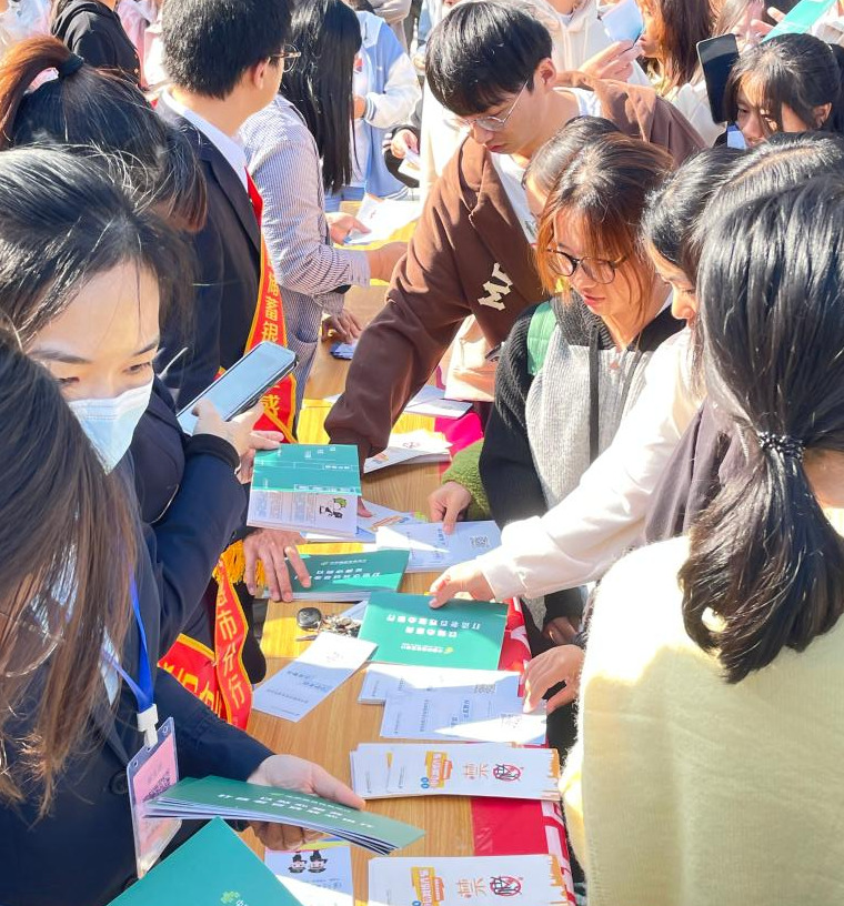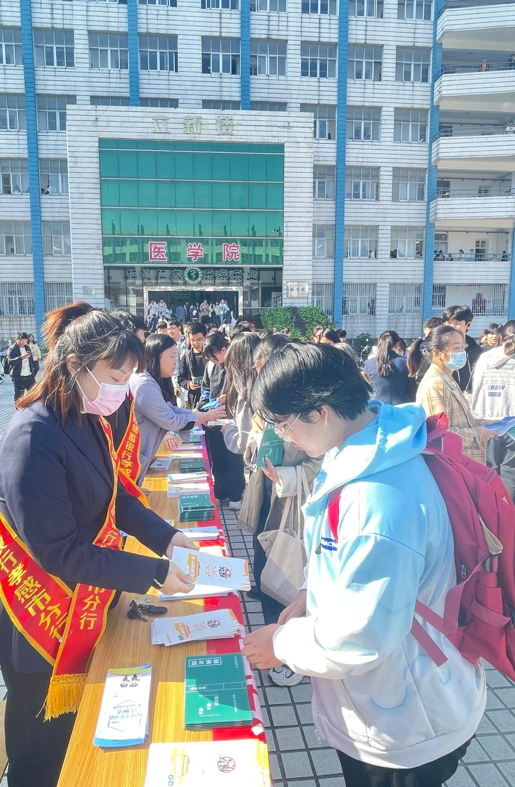 10月23日上午,为落实党中央、国务院关于打击治理电信网络诈骗、跨境赌博的工作要求,打击涉赌涉诈黑色“资金链”,增强师生安全支付意识,beat365亚洲体育官方网站联合中国邮政储蓄银行孝感市分行开展“反诈拒赌校园行”主题宣传活动。本次活动在立德楼广场举行,活动吸引了beat365亚洲体育官方网站22、23级数百名师生参与。