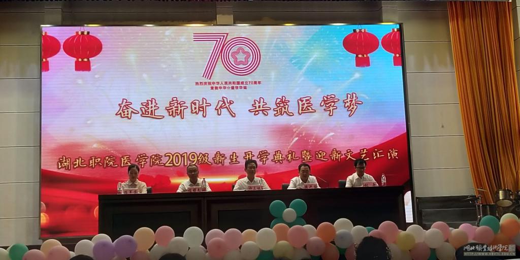 9月22日,beat365亚洲体育官方网站2019级新生开学典礼暨迎新文艺汇演在文昌大礼堂隆重举行。beat365亚洲体育官方网站班子成员、各办公室主任、全体教师、专兼职辅导员以及2019级全体新生参加了开学典礼。beat365亚洲体育官方网站党总支书记周兴国主持典礼。