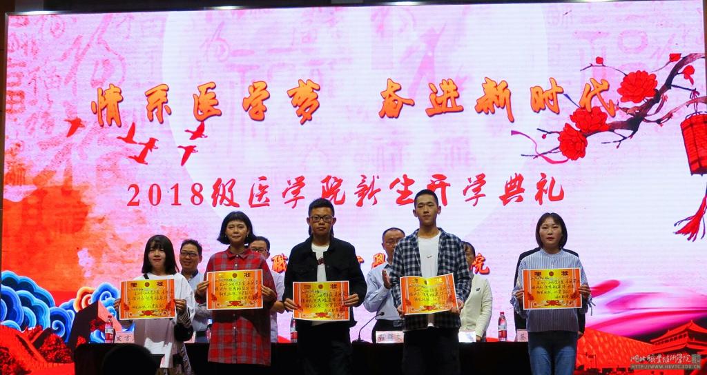 开学典礼在庄严的国歌声中拉开帷幕。全体新生高举右拳齐诵医学生誓言,“健康所系,性命相托”的铮铮誓言回荡会场,象征广大学子从此踏上神圣医路。beat365亚洲体育官方网站2017级学生代表刘立翰介绍了学习体会。2018级新生代表王鑫洁作了表态性发言。教师代表杨娟元与同学们分享了成长经历,对并大家寄予殷切希望。beat365亚洲体育官方网站副院长张舟宣读了2017年度优秀学生干部、三好学生和优秀班集体的表彰决定,举行了现场颁奖仪式,并勉励全体学生以受表彰的先进集体和个人为榜样,刻苦学习,奋发进取。