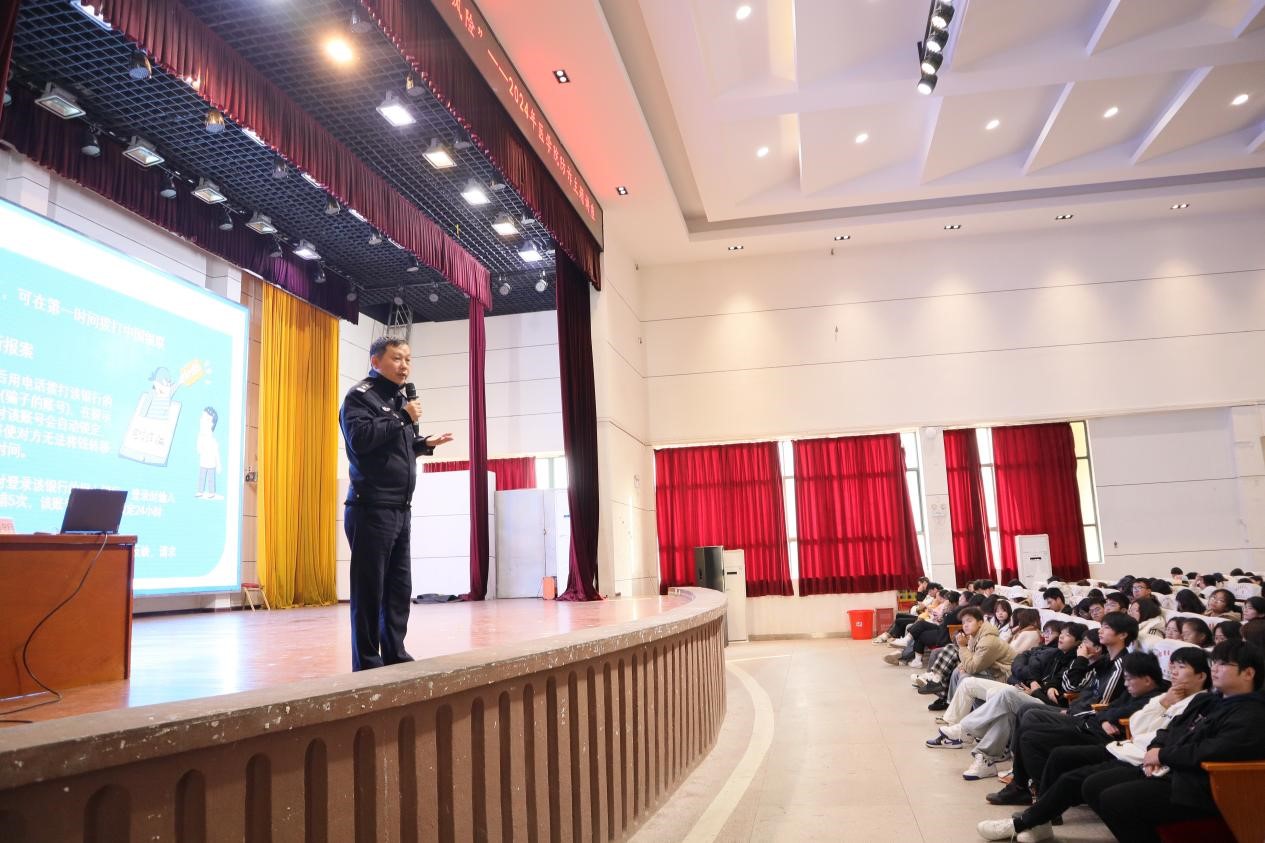 (本网讯王光耀 张韫仪 樊一舜)11月20日,beat365亚洲体育官方网站联合学校党委保卫部,邀请孝南公安分局新华派出所所长王诗明来校为师生开展防范电信网络诈骗安教育专题讲座,讲座由党委保卫部负责人郭自鹏主持。