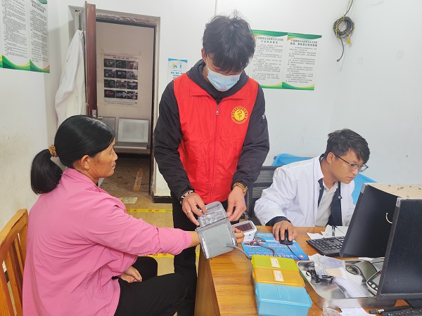 李鸿涛负责登记信息、分发药品,忙碌却充实。他说:“看着乡亲们从愁容满面到眉头舒展,我才真正明白‘医者仁心’四个字的分量”。这场身体与心灵的双重奔赴,不仅加深了他对医学专业的理解,更让他体会到“为家乡做实事”的踏实与快乐。