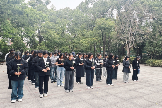 全体师生依次向烈士纪念碑敬献鲜花,集体肃立鞠躬默哀,用无声的敬意缅怀革命先烈的丰功伟绩。学生代表严子欣在发言中表示:“作为医学生,我们定将赓续先烈遗志,以仁心仁术守护人民健康,以青春奋斗践行时代使命,共同书写中华民族伟大复兴新篇章。