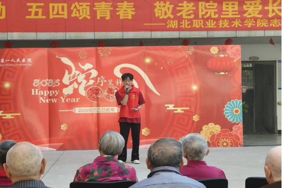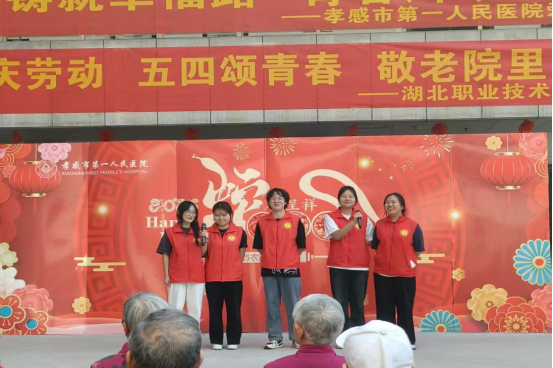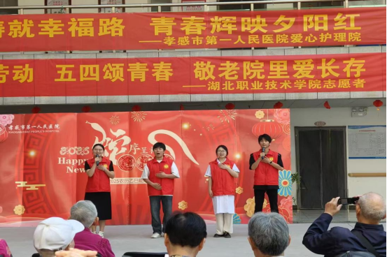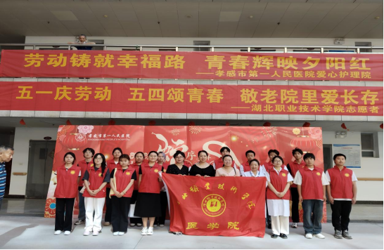 (本网讯 邓彬新 黄珑云)在“五一”劳动节和“五四”青年节来临之际,4月29日beat365亚洲体育官方网站天使志愿服务队组织志愿者前往孝感市第一人民医院爱心护理院,开展“五一庆劳动,五四颂青春,敬老院里爱长存”志愿服务活动。通过文艺表演、互动陪伴等形式,志愿者们为老人送去关怀,同时致敬护工群体的辛勤付出,展现了医学生的社会责任感和青年担当。