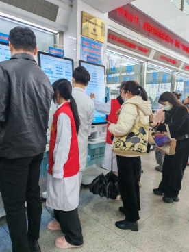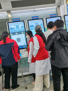 门诊引导现场,志愿者们分工协作、有条不紊。自助挂号机旁,他们耐心俯身为老年患者讲解操作步骤,手把手协助完成挂号、缴费、报告打印等流程,细致解答就诊科室分布、就诊顺序等疑问;在口腔科候诊区,志愿者们主动维持现场秩序,轻声引导患者按叫号顺序有序进入诊室,用温和的话语缓解患者等待时的焦虑情绪。针对行动不便的老年患者,志愿者们还主动上前搀扶,全程陪同完成就诊各环节,用贴心服务打通就医“堵点”。