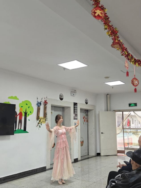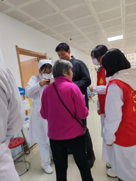 爱心护理区则充满了欢声笑语。志愿者们专门为等候就医的老年患者搭建了“温情小舞台”,一首首《歌唱祖国》《映山红》等经典红歌轮番唱响,熟悉的旋律勾起了老人们的美好回忆,不少老人跟着轻声哼唱;活力四射的舞蹈表演节奏明快,志愿者们用灵动的舞姿传递着青春正能量,赢得现场阵阵掌声。最受欢迎的当属水果套圈小游戏,志愿者们提前准备了橘子、苹果等新鲜水果作为奖品,老人们踊跃参与,套中水果时的欢呼声响彻大厅,在轻松有趣的互动中有效缓解了就医带来的紧张感。