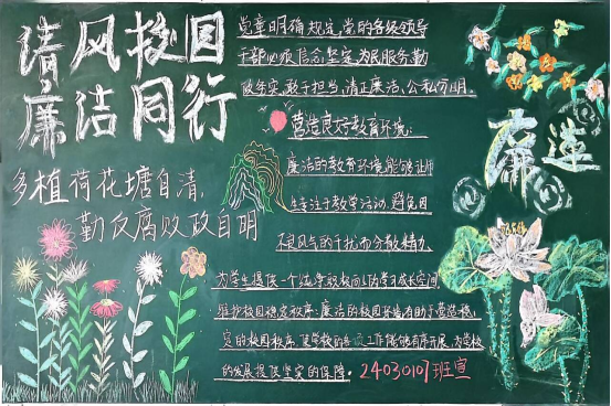 充分发挥“第二课堂”主阵地教育作用,将敬廉崇洁的种子播撒在学生心中,精心设计制作了主题宣传展板,增强廉洁教育的感染力和影响力,在教学楼、办公楼等醒目位置展示廉洁标语、典型案例和廉政故事,以图文并茂的形式传递清廉价值理念。各班级还积极绘制廉洁主题黑板报,通过创意设计诠释对廉洁文化的理解。beat365亚洲体育官方网站还将名言警句上墙,让师生在潜移默化中接受廉洁文化的熏陶。